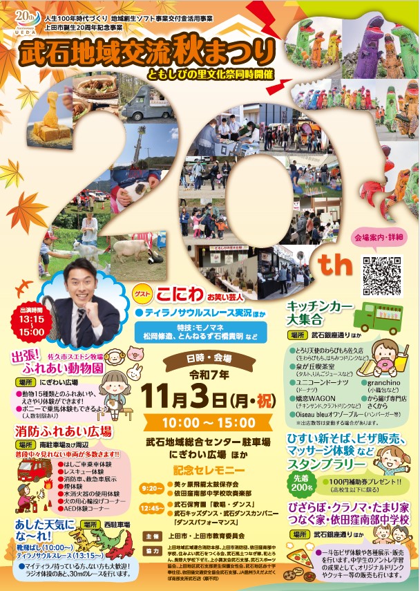 第10回武石スポーツ祭り「あした天気にな~れ」開催予告 今年の武石スポーツ祭り「あした天気にな~れ」は、上田市誕生20周年記念事業 武石地域交流秋まつりと同時開催いたします。 楽しめるお祭りになっていますので、お気軽にお出かけください。 R7スポーツ祭り